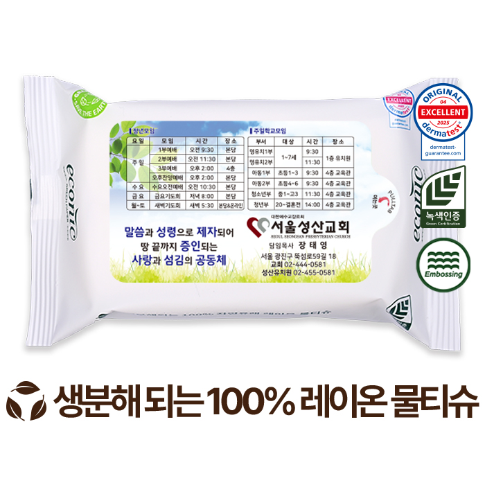 전도용 에코닉 생분해 화이트 라벨형 물티슈 60g (10매)