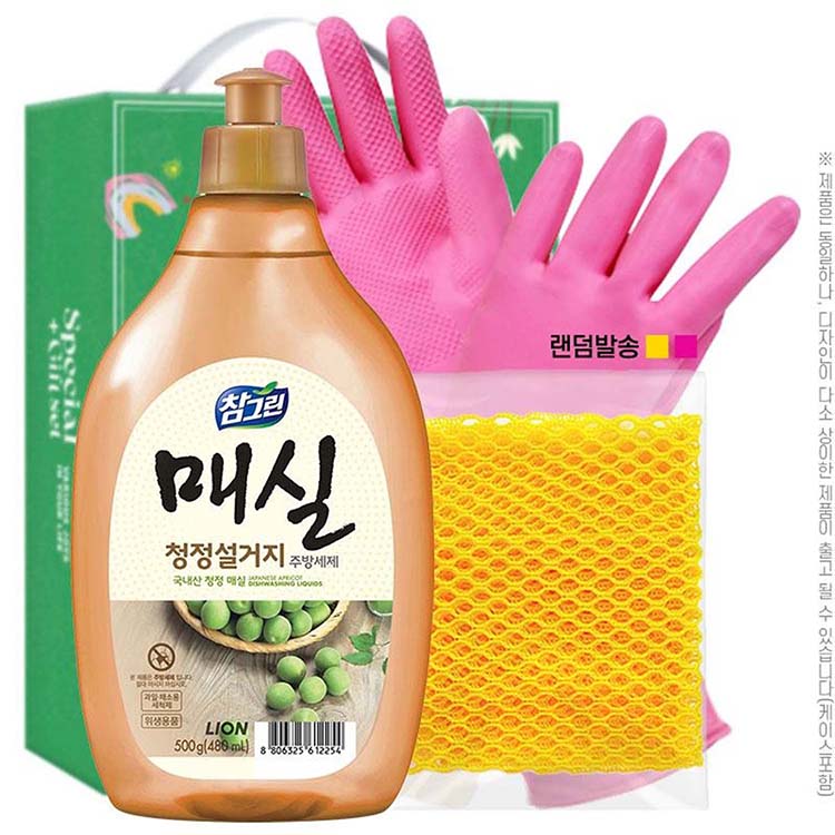 [참그린] 참그린 매실 500용기 고무장갑32cm 망사수세미 3종 세트