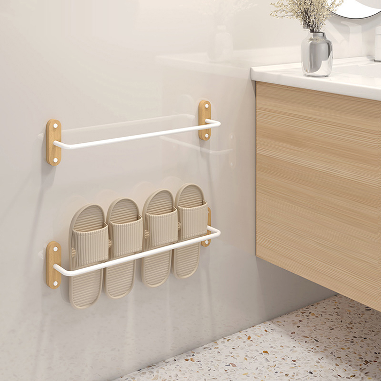 [바헤르츠] BH-TR20 무타공 접착식 느티나무원목 욕실슬리퍼 정리 타올 수건걸이