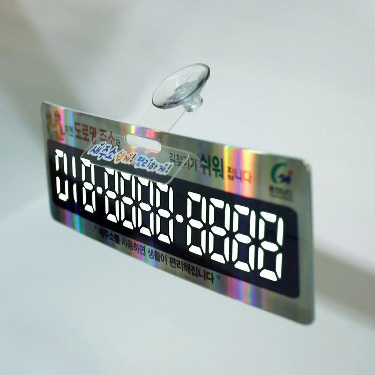 투명고리의 탄성을 이용하여 자연스러운 각도를 형성하여 차량 부착시 운전자의 시야에 정확하게 광고가 한눈에 들어오는 제품