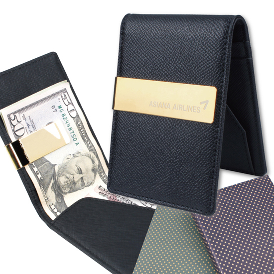 소가죽으로 제작한 머니클립지갑에 24K금도금클립으로 고급화를 추구