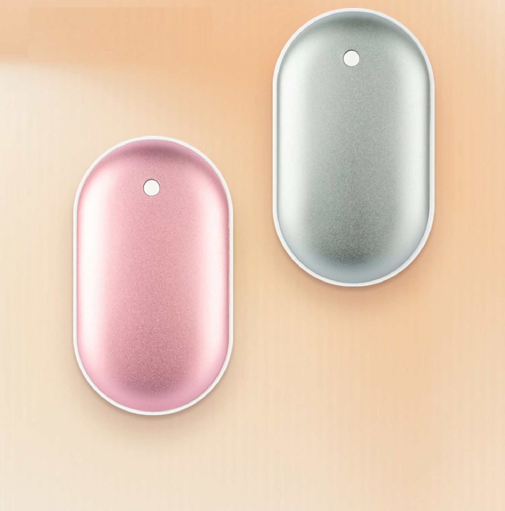 핑크, 실버 2가지 색상의 보조배터리 겸용 휴대용 손난로
