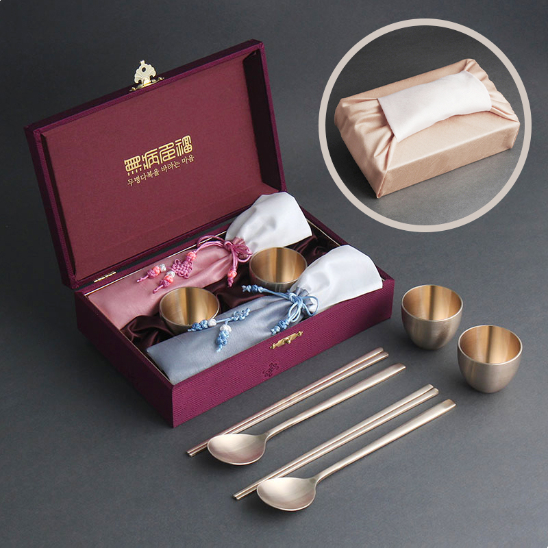 우리 방짜유기 술잔 수저 2인 세트 (겹보자기 포장)