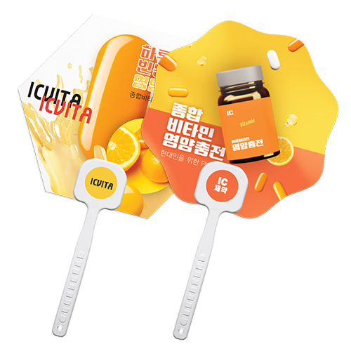 [로고 긴팬시] 자유형 백색손잡이 부채 (190x190mm) - 양면컬러인쇄